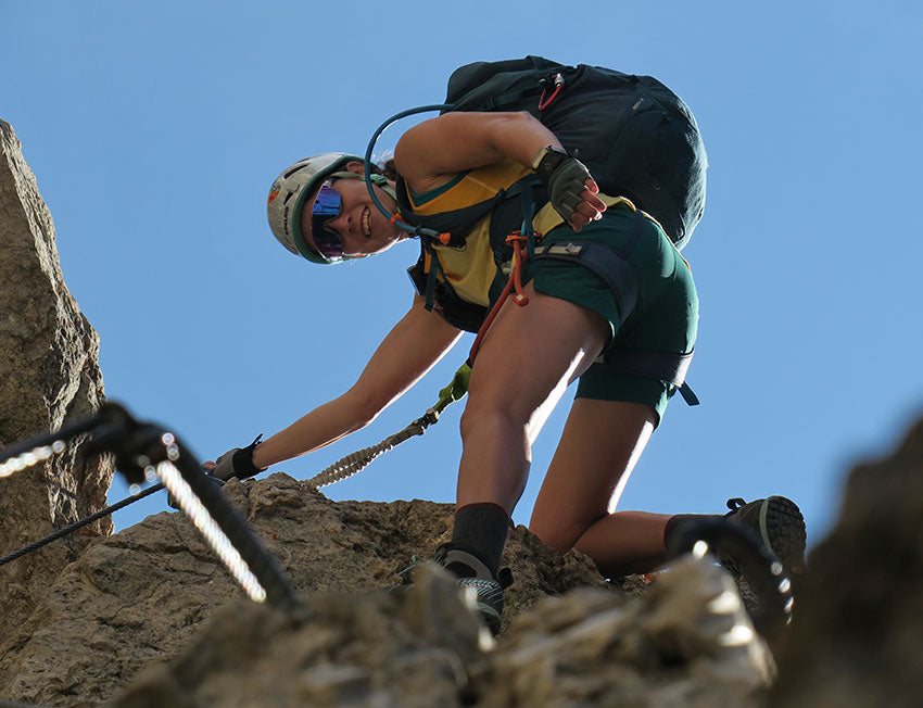 Melina ist als Multisportlerin groß geworden und war von Kindesbeinen an in den Bergen unterwegs. Nachdem eine Karriere in der Leichtathletik scheiterte, hat sie sich in einem Auslandssemester erneut in die Bergwelten verliebt und ist seitdem, wann immer es geht, unterwegs. Klettersteige sind schnell zu ihrer großen Leidenschaft geworden und die Verbindung von Wandern und Klettern lässt sie nicht mehr los. Alleine auf einem Gipfel zu stehen, den man nicht auf normalem Wege, sondern nur an Drahtseilen kletternd erreichen kann, ist für Melina das Größte.