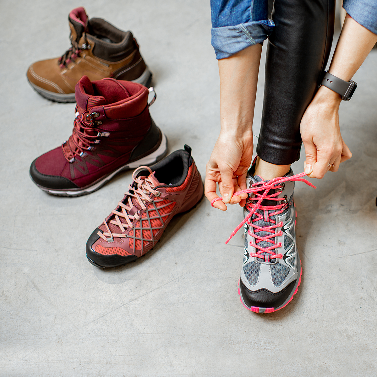 - Sportschuhe oder niedrige Wanderschuhe werden am besten mit einer Socke in der Höhe "quarter (knöchelhoch)" kombiniert.